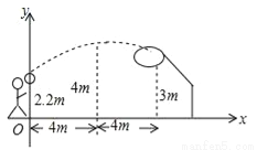 如图,一场篮球赛中,篮球运动员跳起投篮,已知球出手时离地面高2.2m,与篮圈中心的水平距离为8m,当球出手后水平距离为4m时达到最大高度4m,篮圈运行的轨迹为抛物线的一部分,篮圈中心距离地面3m,运动员发现未投中,若假设出手的角度和力度都不变,要使此球恰好通过篮圈中心,运动员应该跳得( )
