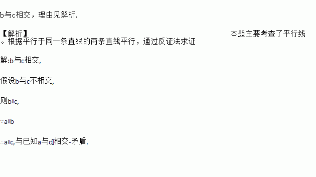 如图所示,a∥b,a与c相交,那么b与c相交吗?为什么?