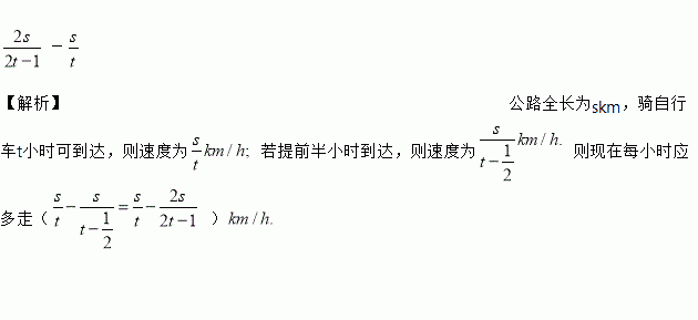 公路全长为skm,骑自行车t小时可到达,为了提前半小时到达,骑自行车每小时应多走_____________.