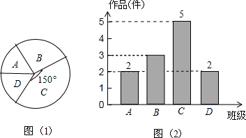 4£®´´Ôì½ÚÆÚ¼ä£¬ÖØÇìÓý²ÅÖÐѧÏòѧÉúÕ÷¼¯Ð£·þ×ÔÖ÷Éè¼Æ×÷Æ·£®³õÈýÄê¼¶ÐÅÏ¢¼¼ÊõÕÅÀÏʦ´ÓÈ«Äê¼¶32¸ö°àÖÐËæ»ú³éÈ¡ÁËA¡¢B¡¢C¡¢D¹²Ëĸö°à£¬¶ÔÕ÷¼¯µ½µÄ×÷Æ·µÄÊýÁ¿½øÐÐÁË·ÖÎöͳ¼Æ£¬ÖÆ×÷ÁËÈçÏÂÁ½·ù²»ÍêÕûµÄͳ¼ÆÍ¼£®£¨1£©ÕÅÀÏʦËùµ÷²éµÄ4¸ö°àÕ÷¼¯µ½×÷Æ·¹²12¼þ£¬ÆäÖÐB°àÕ÷¼¯µ½×÷Æ·3¼þ£¬Çë°Ñͼ2²¹³äÍêÕû£®