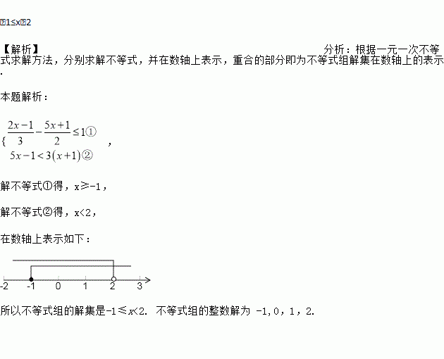 解不等式组并在数轴上表示出不等式组的解集.