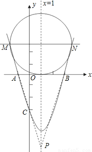 (2)设圆的半径为r,依题意有M(1-r,r),N(1+r,r)