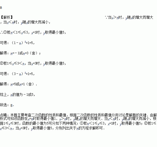 已知二次函数y=(x﹣h)2+1(h为常数),在自变量x的值满足1≤x≤3的情况下与其对应的函数值y的最小值为5,则h的值为( )
