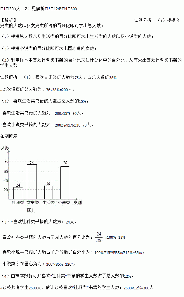 (4)若该学校共有学生2500人,估计该校喜欢“社科类”书籍的学生人数.