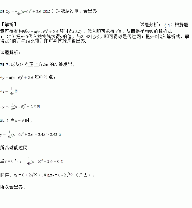 ()球能否越过球网?球会不会出界?请说明理由.![]()