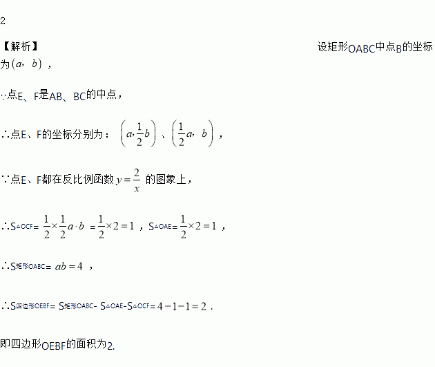 如图,在平面直角坐标系中,函数(x>0)的图象经过矩形OABC的边AB、BC的中点E、F,则四边形OEBF的面积为_____.