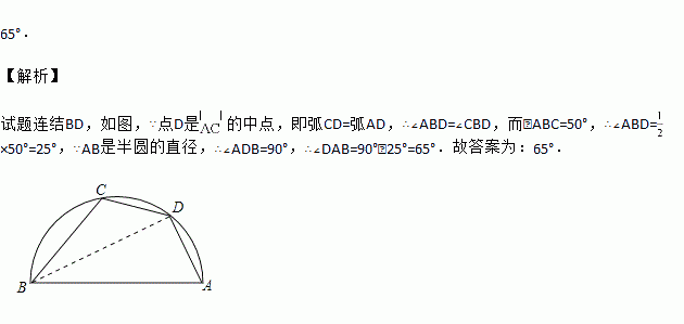 如图,AB 是半圆的直径,点 D 是弧 AC 的中点,∠ABC=50°,则∠DAB 的度数为_