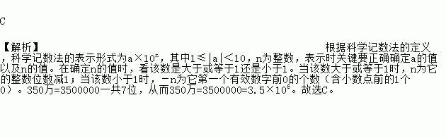南海资源丰富,其面积约为350万平方千米,相当于我国的渤海、黄海和东海总面积的3倍.其中350万用科学记数法表示为【 】