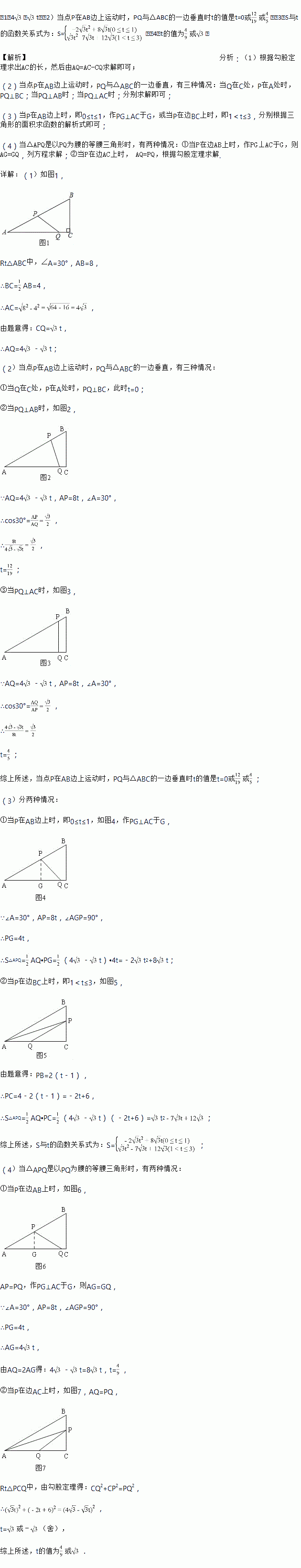 (3)设△APQ的面积为S,求S与t的函数关系式;