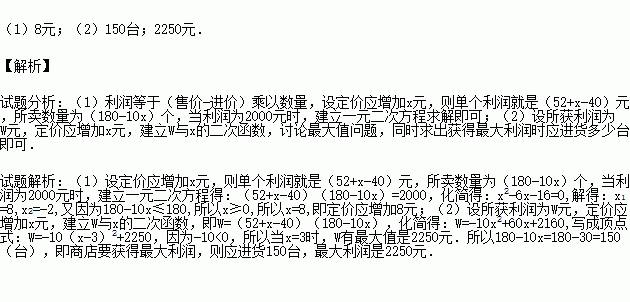 (1)商店若将准备获利2000元,则定价应增加多少元?
