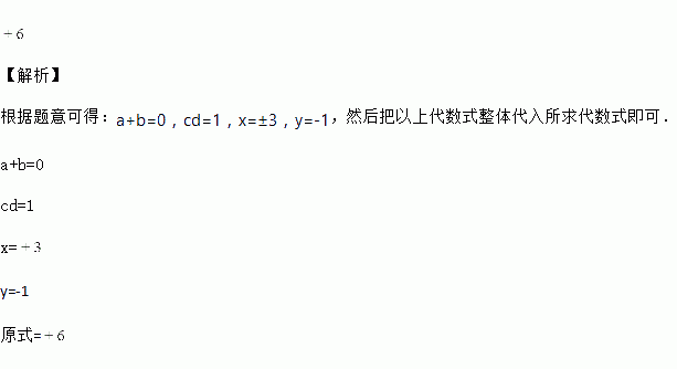 已知:a与b互为相反数,c与d互为倒数,x的平方是9,y是最大的负整数.求:2x-cd+6(a+b)-y2015的值.