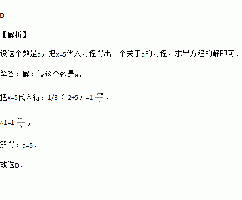,这该怎么办呢?他想了一想,然后看了一下书后面的答案,知道此方程的解是x=5,于是,他很快便补好了这个常数,并迅速地做完了作业.同学们,你能补出这个常数吗?它应该是