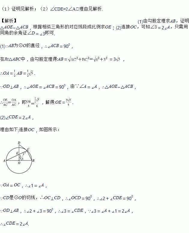 如图,△ABC内接于⊙O,且AB为⊙O的直径OD⊥AB,与AC交于点E,与过点C的⊙O切线交于点D.