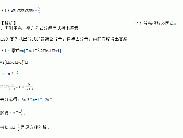 (1)因式分【解析】a(n﹣1)2﹣2a(n﹣1)+a.