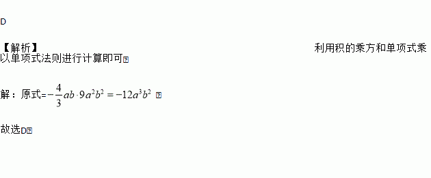 A. 4a2b2 B. -4a2b2 C. 12a3b3 D. - 12a3b3