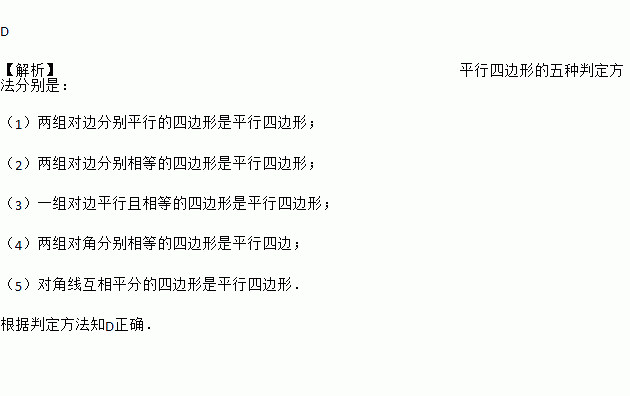 下列条件中,能判定一个四边形是平行四边形的是( )