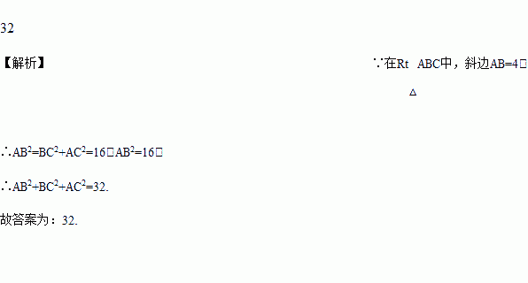 在Rt△ABC中,斜边AB=4,则AB2+BC2+AC2=_____.