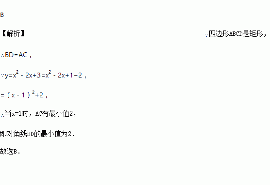 如图,在平面直角坐标系中,点A在抛物线y=x2﹣2x+3上运动.过点A作AC⊥x轴于点C,以AC为对角线作矩形ABCD,连结BD,则对角线BD的最小值为( )