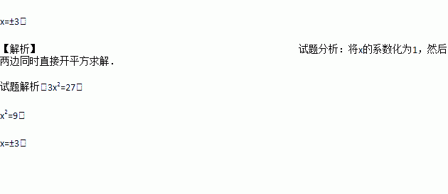 己知:3x2=27,求x的值.