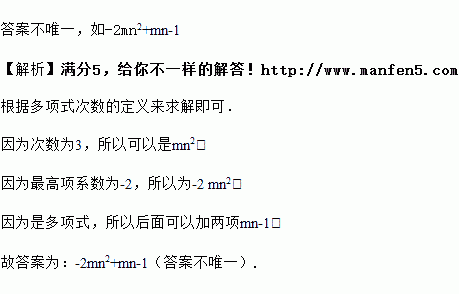 请你写出一个多项式,使它含有字母m,n,最高次项的系数为-2,次数为3,你写出的多项式是__________.