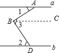 分析 首先过点B作BC∥直线a,再利用平行线的性质得出∠1=∠ABC,∠CBD=∠2,进而得出答案.