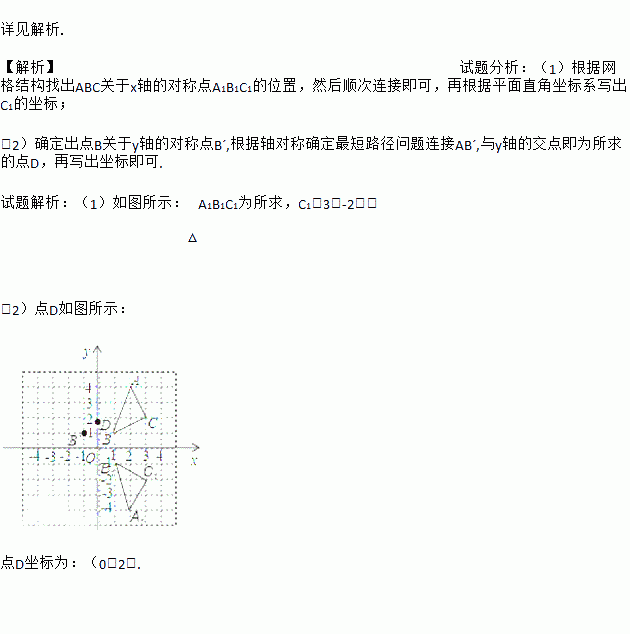 (2)在y轴上找点D,使得AD+BD最小,作出点D并写出点D的坐标____.