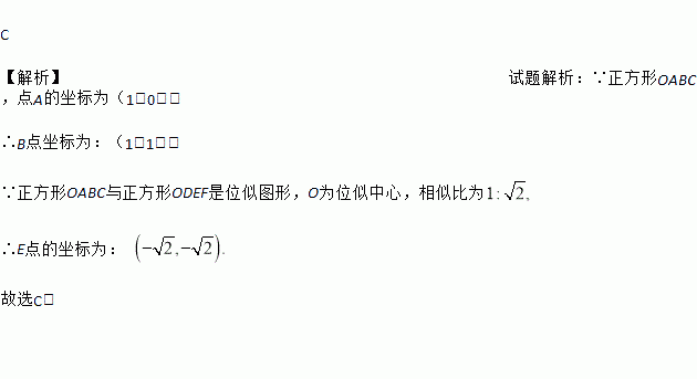 如图,正方形OABC与正方形ODEF是位似图形,O为位似中心,相似比为1: