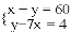 “珍爱生命,拒绝毒品”,学校举行的2017年禁毒知识竞赛共有60道题,曾浩同学答对了x道题,答错了y道题(不答视为答错),且答对题数比答错题数的7倍还多4道,那么下面列出的方程组中正确的是( )
