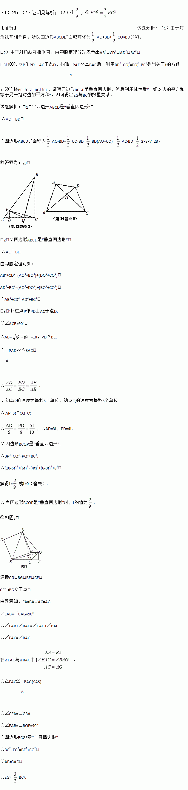 ,AB=3AC,分别以AB,AC为边向外作正方形ABDE和正方形ACFG,连结EG.请直接写出线段EG与BC之间的数量关系.