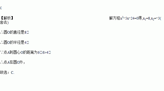 已知⊙O的直径是方程的根,且点A到圆心O的距离为6,则点A在( )