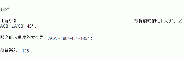 如图,一块等腰直角的三角板ABC,在水平桌面上绕点C按顺时针方向旋转到 的位置,使点A、C、在一直线上,那么旋转角是____________________度
