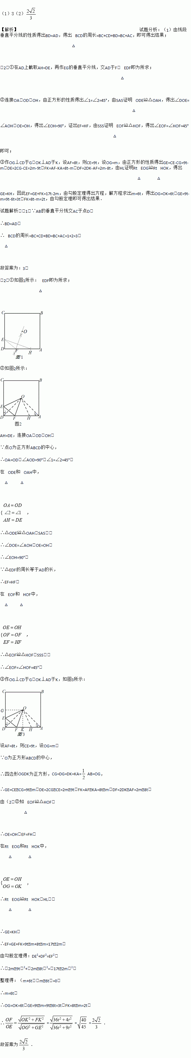 (2)O为正方形ABCD的中心,E为CD边上一点,F为AD边上一点,且△EDF的周长等于AD的长.