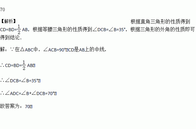 如图,在△ABC中,∠ACB=90°,∠B=35°,CD是AB上的中线,则∠ADC=_____°.