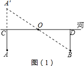 分析:(1)根据轴对称的性质和“两点之间线段最短”,连接A′B,得到最短距离为A′B,再根据相似三角形的性质和A到河岸CD的中点的距离为500米,即可求出A'B的值;