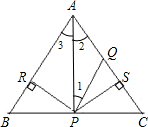 如图所示,△ABC为等边三角形,AQ=PQ,PR=PS,PR⊥AB于R,PS⊥AC于S,有下面四个结论: