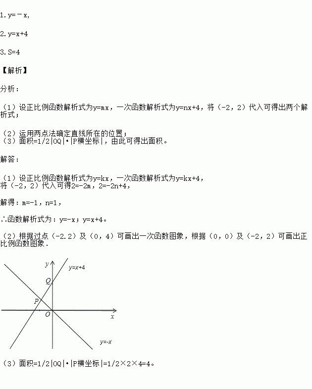(本题10分)已知一个正比例函数和一个一次函数的图象交于点P(-2,2),且一次函数的图象与y轴相交于点Q(0,4)