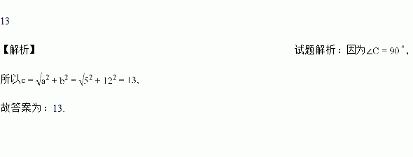 在△ABC中,∠C=90°,若a=5,b=12,则c=_____;