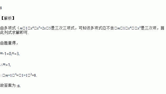 已知多项式(m﹣1)x4﹣xn+2x﹣5是三次三项式,则(m+1)n=_____.
