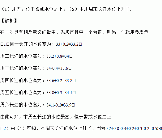 (2)与上周周末相比,本周周末长江的水位是上升了还是下降了?并通过计算说明理由.