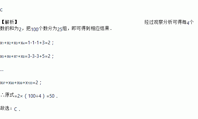 A. 0 B. ﹣49 C. 50 D. ﹣50
