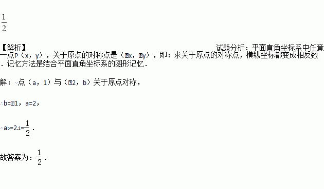 若点(a,1)与(-2,b)关于原点对称,则ab=________.