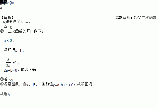 二次函数y=ax2+bx+c(a≠0)的图象如图所示,下列说法:①b2-4ac=0;②2a+b=0;③若(x1,y1),(x2,y2)在函数图象上,当x1<x2时,y1<y2;④a-b+c<0.其中正确的是( )