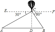 如图,在热气球C上测得两建筑物A、B底部的俯角分别为30°和60°.如果这时气球的垂直高度CD为90米.且点A、D、B在同一直线上,则建筑物A、B间的距离为________.米.