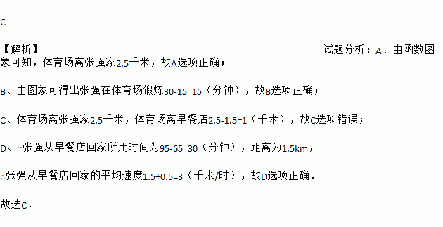 D. 张强从早餐店回家的平均速度是3千米/小时