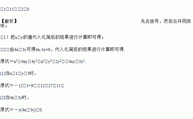 已知代数式x2-4xy+4y2-(x2-y2)-2y2.