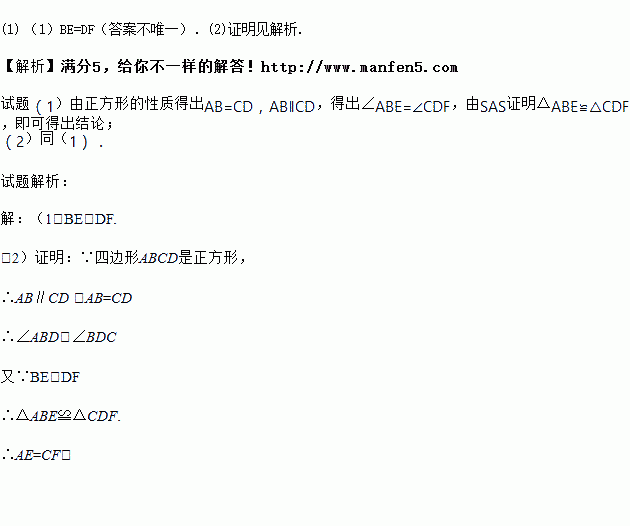 (2)请你根据题目中的条件和你添加的条件证明AE=CF.