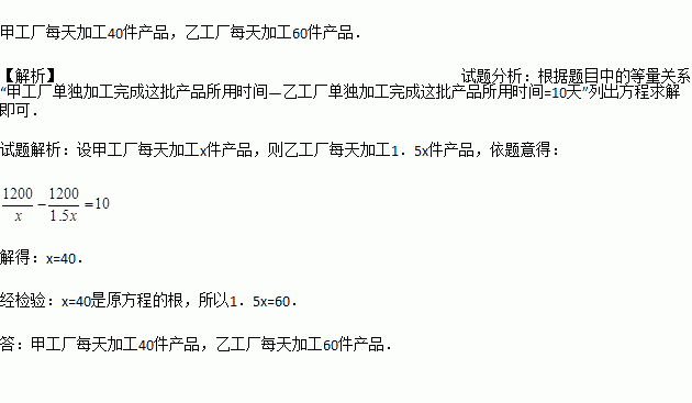 根据以上信息,求甲、乙两个工厂每天分别能加工多少件新产品?