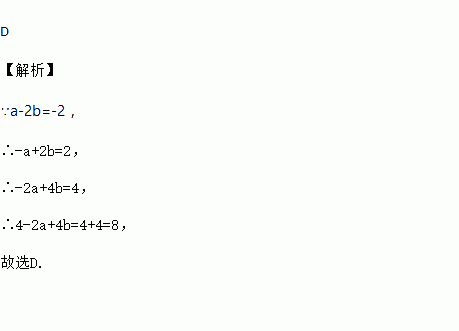 已知a-2b=-2,则4-2a+4b的值是( )