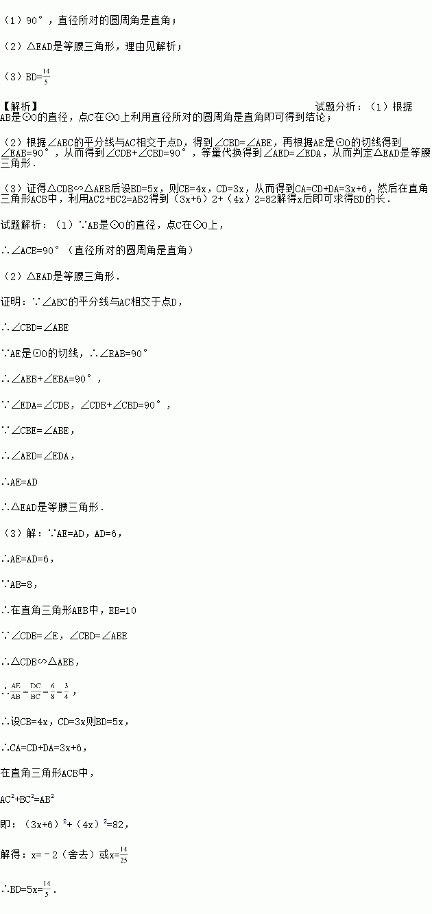 如图,AB是⊙O的直径,点C在⊙O上,∠ABC的平分线与AC相交于点D,与⊙O过点A的切线相交于点E.