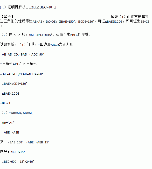 (题文)如图,在正方形ABCD的外侧,作等边三角形ADE,连接BE,CE.